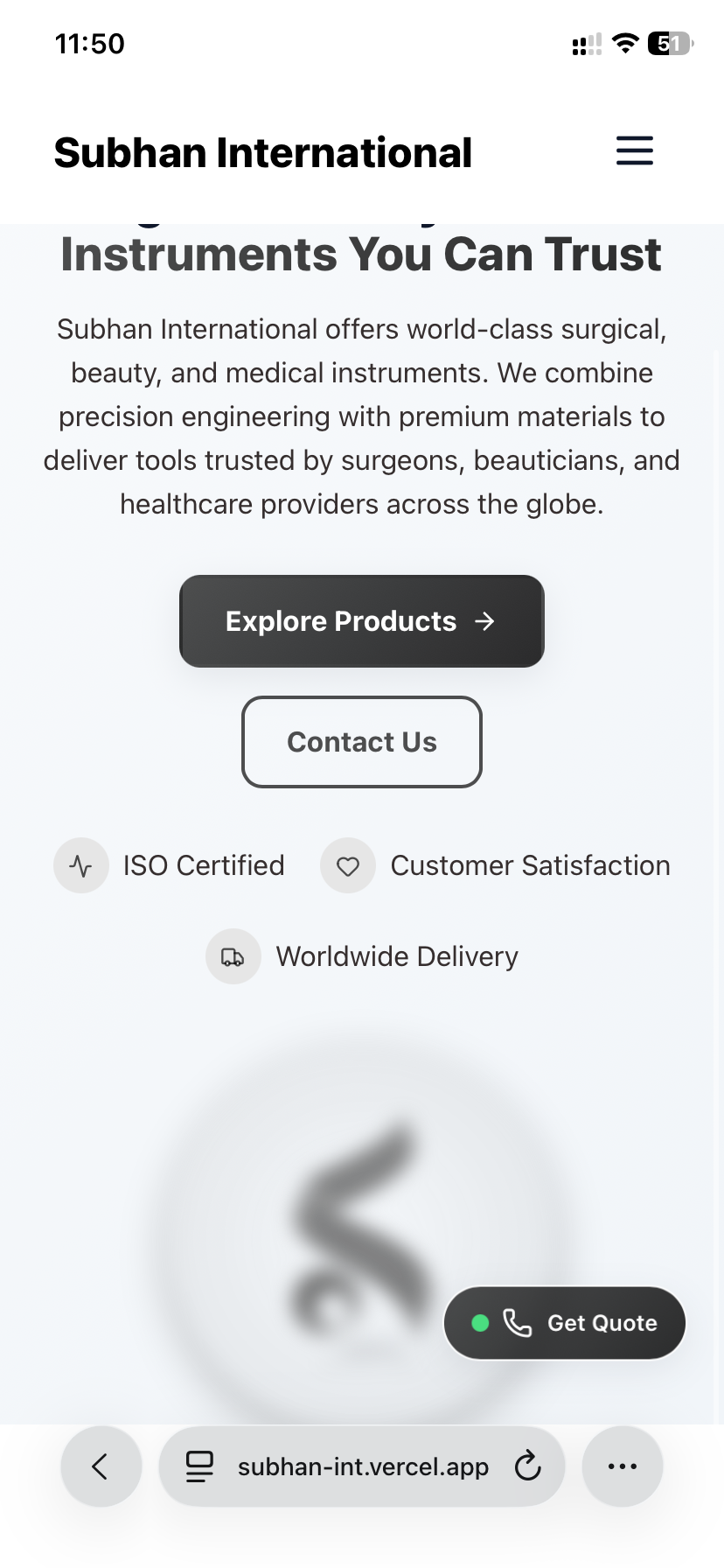 The Subhan International website that shows products has an admin dashboard to manage products.